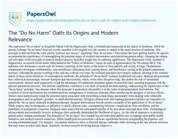 The "Do No Harm" Oath: Its Origins and Modern Relevance. (2024, May 28). Retrieved from https://hub.papersowl.com/examples/the-do-no-harm-oath-its-origins-and-modern-relevance/
