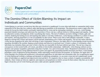 The Domino Effect of Victim Blaming: Its Impact on Individuals and Communities. (2024, Mar 25). Retrieved from https://hub.papersowl.com/examples/the-domino-effect-of-victim-blaming-its-impact-on-individuals-and-communities/