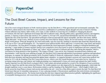 The Dust Bowl: Causes, Impact, and Lessons for the Future. (2024, Jun 28). Retrieved from https://hub.papersowl.com/examples/the-dust-bowl-causes-impact-and-lessons-for-the-future/