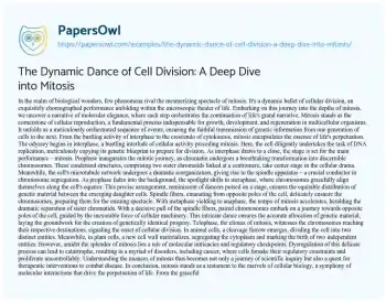 The Dynamic Dance of Cell Division: A Deep Dive into Mitosis. (2024, Mar 18). Retrieved from https://hub.papersowl.com/examples/the-dynamic-dance-of-cell-division-a-deep-dive-into-mitosis/