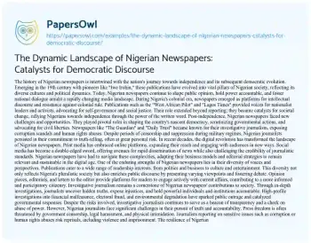 The Dynamic Landscape of Nigerian Newspapers: Catalysts for Democratic Discourse. (2024, Jun 28). Retrieved from https://hub.papersowl.com/examples/the-dynamic-landscape-of-nigerian-newspapers-catalysts-for-democratic-discourse/