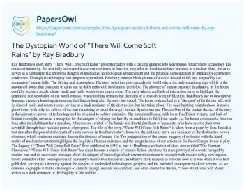 The Dystopian World of "There Will Come Soft Rains" by Ray Bradbury. (2025, Jul 26). Retrieved from https://hub.papersowl.com/examples/the-dystopian-world-of-there-will-come-soft-rains-by-ray-bradbury/