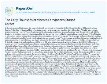 The Early Flourishes of Vicente Fernández's Storied Career. (2023, Oct 26). Retrieved from https://hub.papersowl.com/examples/the-early-flourishes-of-vicente-fernandezs-storied-career/