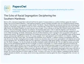 The Echo of Racial Segregation: Deciphering the Southern Manifesto. (2024, Apr 01). Retrieved from https://hub.papersowl.com/examples/the-echo-of-racial-segregation-deciphering-the-southern-manifesto/