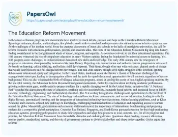 The Education Reform Movement. (2024, Apr 29). Retrieved from https://hub.papersowl.com/examples/the-education-reform-movement/