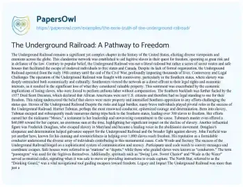 The Underground Railroad: A Pathway to Freedom. (2021, Apr 02). Retrieved from https://hub.papersowl.com/examples/the-eerie-truth-of-the-underground-railroad/