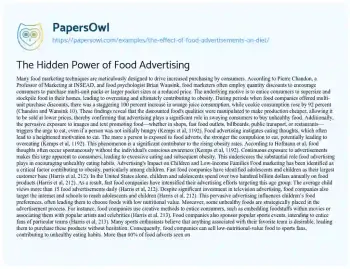 The Hidden Power of Food Advertising. (2022, May 03). Retrieved from https://hub.papersowl.com/examples/the-effect-of-food-advertisements-on-diet/