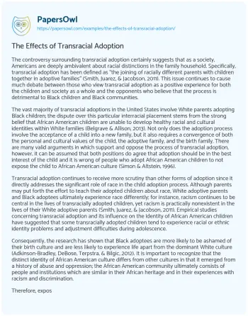 The Effects of Transracial Adoption. (2021, Mar 27). Retrieved from https://hub.papersowl.com/examples/the-effects-of-transracial-adoption/