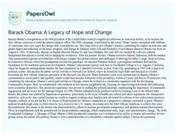 Barack Obama: A Legacy of Hope and Change. (2019, Feb 23). Retrieved from https://hub.papersowl.com/examples/the-election-of-barack-obama/