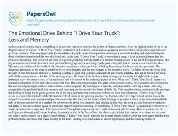 The Emotional Drive Behind "I Drive Your Truck": Loss and Memory. (2024, Mar 25). Retrieved from https://hub.papersowl.com/examples/the-emotional-drive-behind-i-drive-your-truck-loss-and-memory/