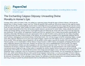 The Enchanting Calypso Odyssey: Unraveling Divine Morality in Homer's Epic. (2023, Nov 24). Retrieved from https://hub.papersowl.com/examples/the-enchanting-calypso-odyssey-unraveling-divine-morality-in-homers-epic/