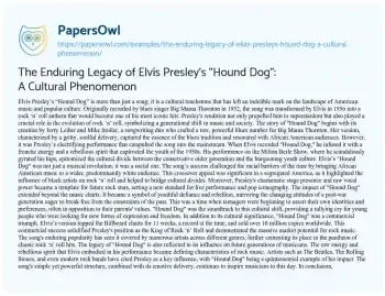 The Enduring Legacy of Elvis Presley's "Hound Dog": A Cultural Phenomenon. (2024, Jul 16). Retrieved from https://hub.papersowl.com/examples/the-enduring-legacy-of-elvis-presleys-hound-dog-a-cultural-phenomenon/