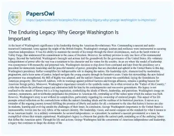 The Enduring Legacy: Why George Washington Is Important. (2024, Mar 25). Retrieved from https://hub.papersowl.com/examples/the-enduring-legacy-why-george-washington-is-important/