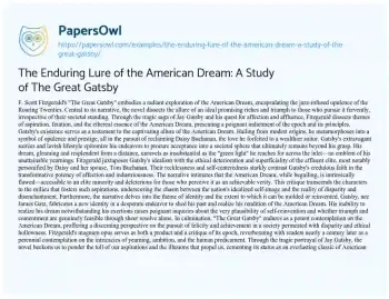 The Enduring Lure of the American Dream: A Study of The Great Gatsby
