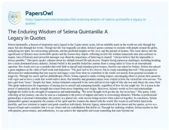 The Enduring Wisdom of Selena Quintanilla: A Legacy in Quotes. (2024, Feb 20). Retrieved from https://hub.papersowl.com/examples/the-enduring-wisdom-of-selena-quintanilla-a-legacy-in-quotes/