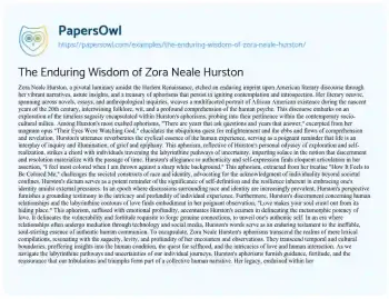 The Enduring Wisdom of Zora Neale Hurston. (2024, Mar 18). Retrieved from https://hub.papersowl.com/examples/the-enduring-wisdom-of-zora-neale-hurston/