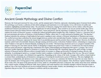 Ancient Greek Mythology and Divine Conflict. (2024, Jul 06). Retrieved from https://hub.papersowl.com/examples/the-enemies-of-dionysus-conflict-and-myth-in-ancient-greece/
