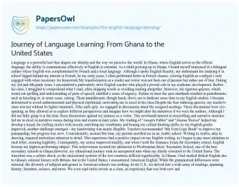 Journey of Language Learning: From Ghana to the United States. (2022, Jun 29). Retrieved from https://hub.papersowl.com/examples/the-english-language-learning/