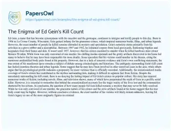 The Enigma of Ed Gein's Kill Count. (2024, May 21). Retrieved from https://hub.papersowl.com/examples/the-enigma-of-ed-geins-kill-count/