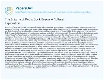 The Enigma of Keum Sook Byeon: A Cultural Exploration. (2024, Mar 01). Retrieved from https://hub.papersowl.com/examples/the-enigma-of-keum-sook-byeon-a-cultural-exploration/