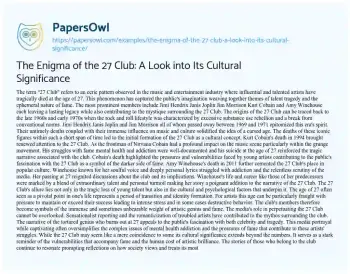 The Enigma of the 27 Club: A Look into Its Cultural Significance. (2024, Jul 06). Retrieved from https://hub.papersowl.com/examples/the-enigma-of-the-27-club-a-look-into-its-cultural-significance/