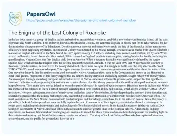 The Enigma of the Lost Colony of Roanoke. (2024, Jul 16). Retrieved from https://hub.papersowl.com/examples/the-enigma-of-the-lost-colony-of-roanoke/