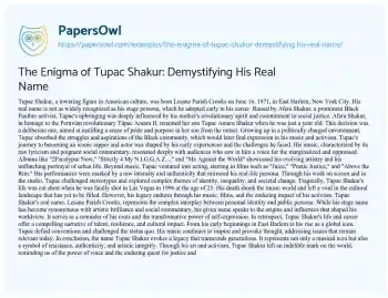 The Enigma of Tupac Shakur: Demystifying His Real Name. (2024, Jun 17). Retrieved from https://hub.papersowl.com/examples/the-enigma-of-tupac-shakur-demystifying-his-real-name/
