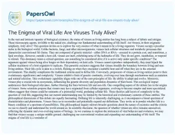 The Enigma of Viral Life: Are Viruses Truly Alive?. (2024, Jul 21). Retrieved from https://hub.papersowl.com/examples/the-enigma-of-viral-life-are-viruses-truly-alive/