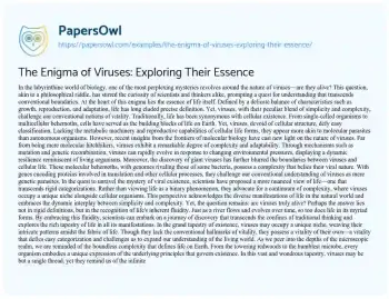 The Enigma of Viruses: Exploring Their Essence. (2024, Jun 01). Retrieved from https://hub.papersowl.com/examples/the-enigma-of-viruses-exploring-their-essence/