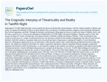 The Enigmatic Interplay of Theatricality and Reality in Twelfth Night. (2024, Mar 25). Retrieved from https://hub.papersowl.com/examples/the-enigmatic-interplay-of-theatricality-and-reality-in-twelfth-night/
