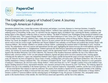 The Enigmatic Legacy of Ichabod Crane: A Journey Through American Folklore. (2023, Dec 01). Retrieved from https://hub.papersowl.com/examples/the-enigmatic-legacy-of-ichabod-crane-a-journey-through-american-folklore/