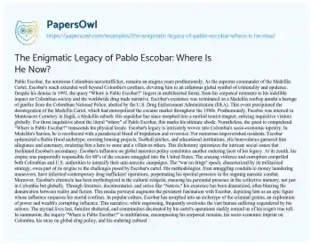 The Enigmatic Legacy of Pablo Escobar: Where Is He Now?. (2024, May 28). Retrieved from https://hub.papersowl.com/examples/the-enigmatic-legacy-of-pablo-escobar-where-is-he-now/