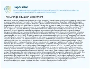 The Strange Situation Experiment. (2024, May 21). Retrieved from https://hub.papersowl.com/examples/the-enigmatic-odyssey-of-human-attachment-a-journey-through-the-labyrinth-of-the-strange-situation-experiment/