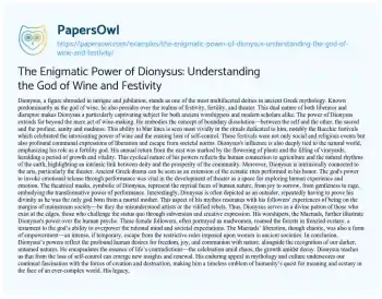 The Enigmatic Power of Dionysus: Understanding the God of Wine and Festivity. (2024, May 21). Retrieved from https://hub.papersowl.com/examples/the-enigmatic-power-of-dionysus-understanding-the-god-of-wine-and-festivity/