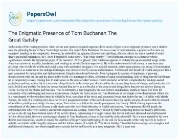 The Enigmatic Presence of Tom Buchanan The Great Gatsby