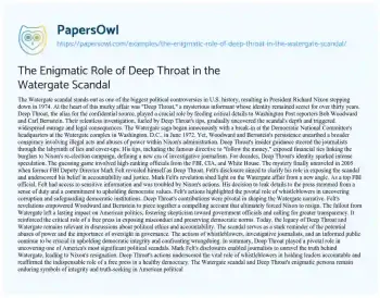 The Enigmatic Role of Deep Throat in the Watergate Scandal. (2024, Jul 16). Retrieved from https://hub.papersowl.com/examples/the-enigmatic-role-of-deep-throat-in-the-watergate-scandal/