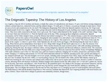 The Enigmatic Tapestry: The History of Los Angeles. (2024, Sep 17). Retrieved from https://hub.papersowl.com/examples/the-enigmatic-tapestry-the-history-of-los-angeles/