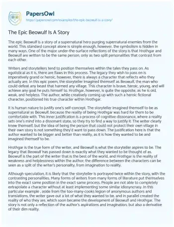 The Epic Beowulf Is A Story. (2019, Aug 25). Retrieved from https://hub.papersowl.com/examples/the-epic-beowulf-is-a-story/