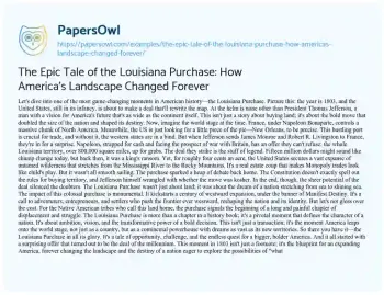 The Epic Tale of the Louisiana Purchase: How America's Landscape Changed Forever. (2024, Mar 25). Retrieved from https://hub.papersowl.com/examples/the-epic-tale-of-the-louisiana-purchase-how-americas-landscape-changed-forever/