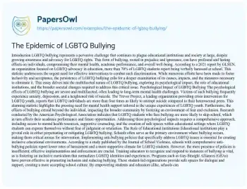 The Epidemic of LGBTQ Bullying. (2024, Dec 27). Retrieved from https://hub.papersowl.com/examples/the-epidemic-of-lgbtq-bullying/