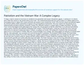 Patriotism and the Vietnam War: A Complex Legacy. (2019, May 18). Retrieved from https://hub.papersowl.com/examples/the-erosion-of-american-support-for-the-vietnam-war/