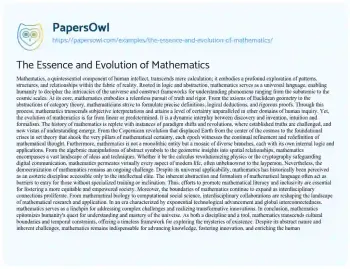 The Essence and Evolution of Mathematics. (2024, Mar 02). Retrieved from https://hub.papersowl.com/examples/the-essence-and-evolution-of-mathematics/