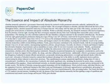 The Essence and Impact of Absolute Monarchy. (2024, May 21). Retrieved from https://hub.papersowl.com/examples/the-essence-and-impact-of-absolute-monarchy/
