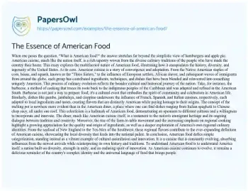 The Essence of American Food. (2024, Apr 01). Retrieved from https://hub.papersowl.com/examples/the-essence-of-american-food/