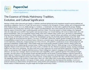 The Essence of Hindu Matrimony: Tradition, Evolution, and Cultural Significance. (2024, Jun 17). Retrieved from https://hub.papersowl.com/examples/the-essence-of-hindu-matrimony-tradition-evolution-and-cultural-significance/