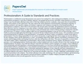 Professionalism: A Guide to Standards and Practices. (2024, Jun 01). Retrieved from https://hub.papersowl.com/examples/the-essence-of-professionalism-in-modern-work-environments/
