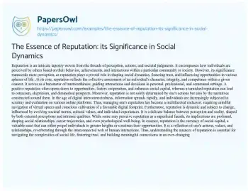 The Essence of Reputation: its Significance in Social Dynamics. (2024, May 12). Retrieved from https://hub.papersowl.com/examples/the-essence-of-reputation-its-significance-in-social-dynamics/
