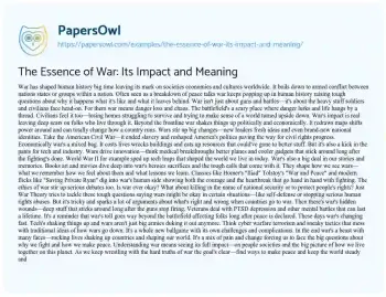 The Essence of War: Its Impact and Meaning