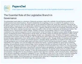 The Essential Role of the Legislative Branch in Governance. (2024, May 28). Retrieved from https://hub.papersowl.com/examples/the-essential-role-of-the-legislative-branch-in-governance/