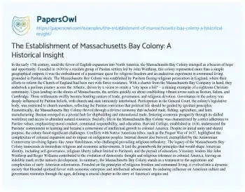 The Establishment of Massachusetts Bay Colony: A Historical Insight